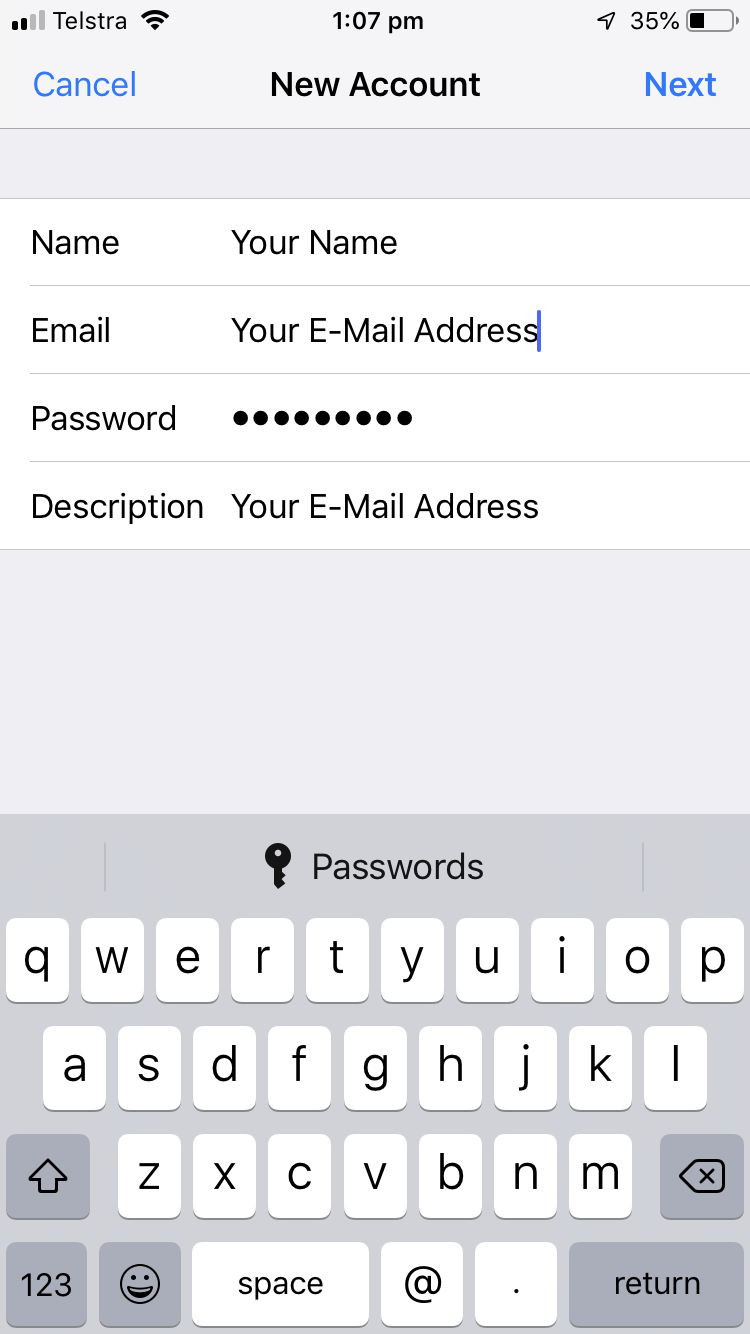 Description – A description so that you can identify your account (e.g. info@yourdomainname.co.uk)